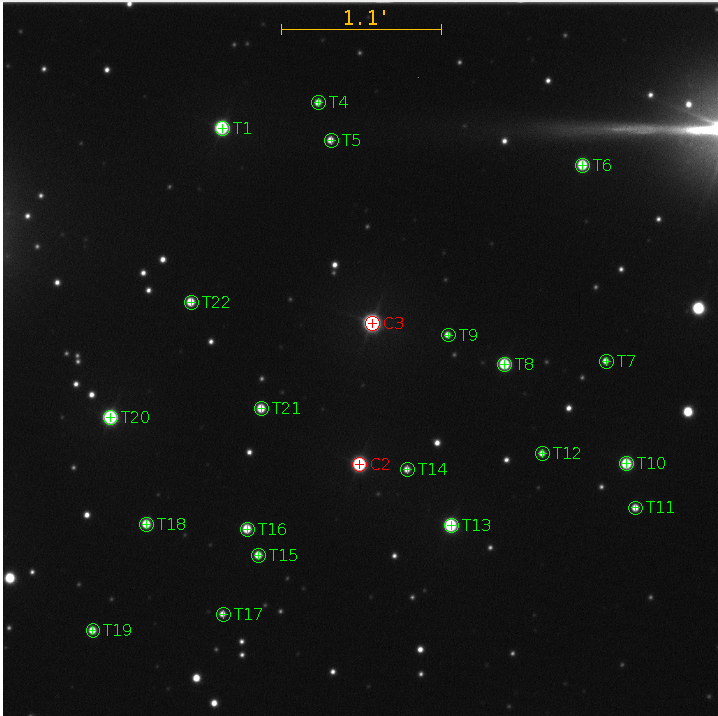 The Astrometry.net system works well and provides plate-solved images with global coordinates, which is important for registering images with photometry applications like the AAVSO’s VPhot. This system will run offline if you download the database files, but it can be tricky to set up the astrometry server, and the data files can be huge.